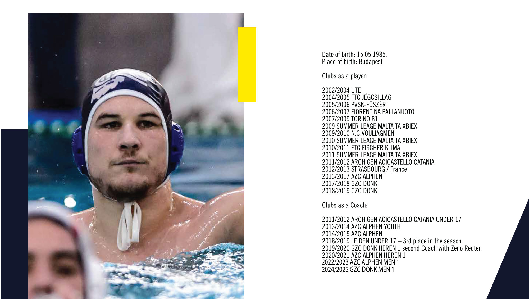 Yuri Szeles was a dynamic and powerful water polo player and is now a coach, known for his exceptional speed, strength, and force in the water. Throughout his professional career, he became renowned as one of the fastest players in the league, constantly pushing the limits of his athleticism. With a relentless drive for improvement, Yuri dominated the water with unmatched agility and precision, leaving a lasting impact on every match he played. His international career, marked by his swift movements and explosive power, showcases his commitment to mastering every aspect of the sport. His experience spans various countries, including Italy, Greece, and Hungary, where he has gained valuable insights into different styles of playing and coaching.